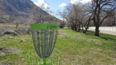 27 holes of natural course - open meadow with trees, bushes, and the Weber River.